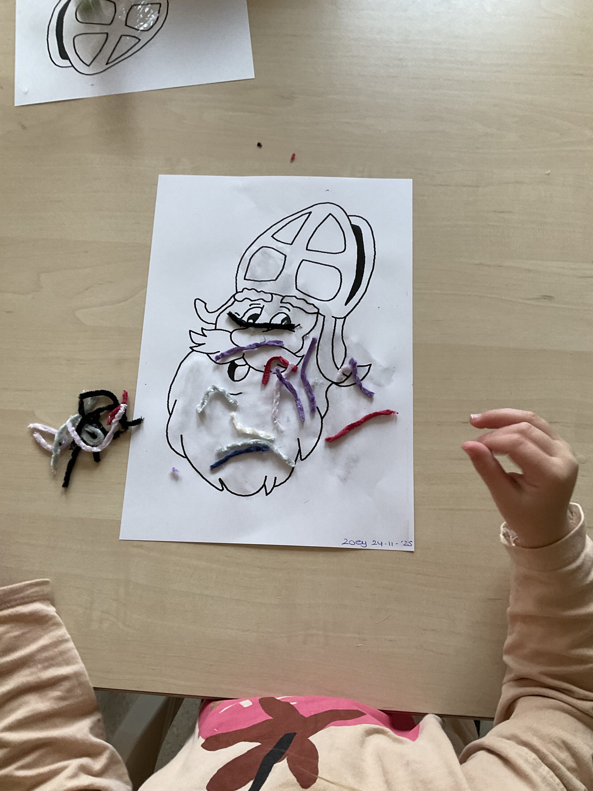 Vandaag knutselen we aan Sinterklaas! We plakken zijn baard met wol. Zo leuk om te zien hoe verschillend ze allemaal worden.