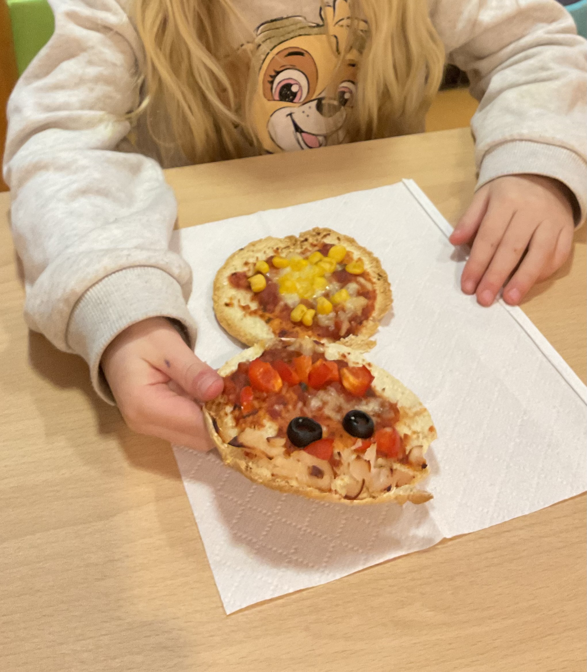 Wij maakten heerlijke pizza’s in de vorm van een sneeuwpop. De kinderen mochten zelf snijden, beleggen en keuzes maken. Door het zelf te doen, ontdekken ze wat ze al kunnen en groeien ze in zelfvertrouwen. Wat een smakelijk resultaat!