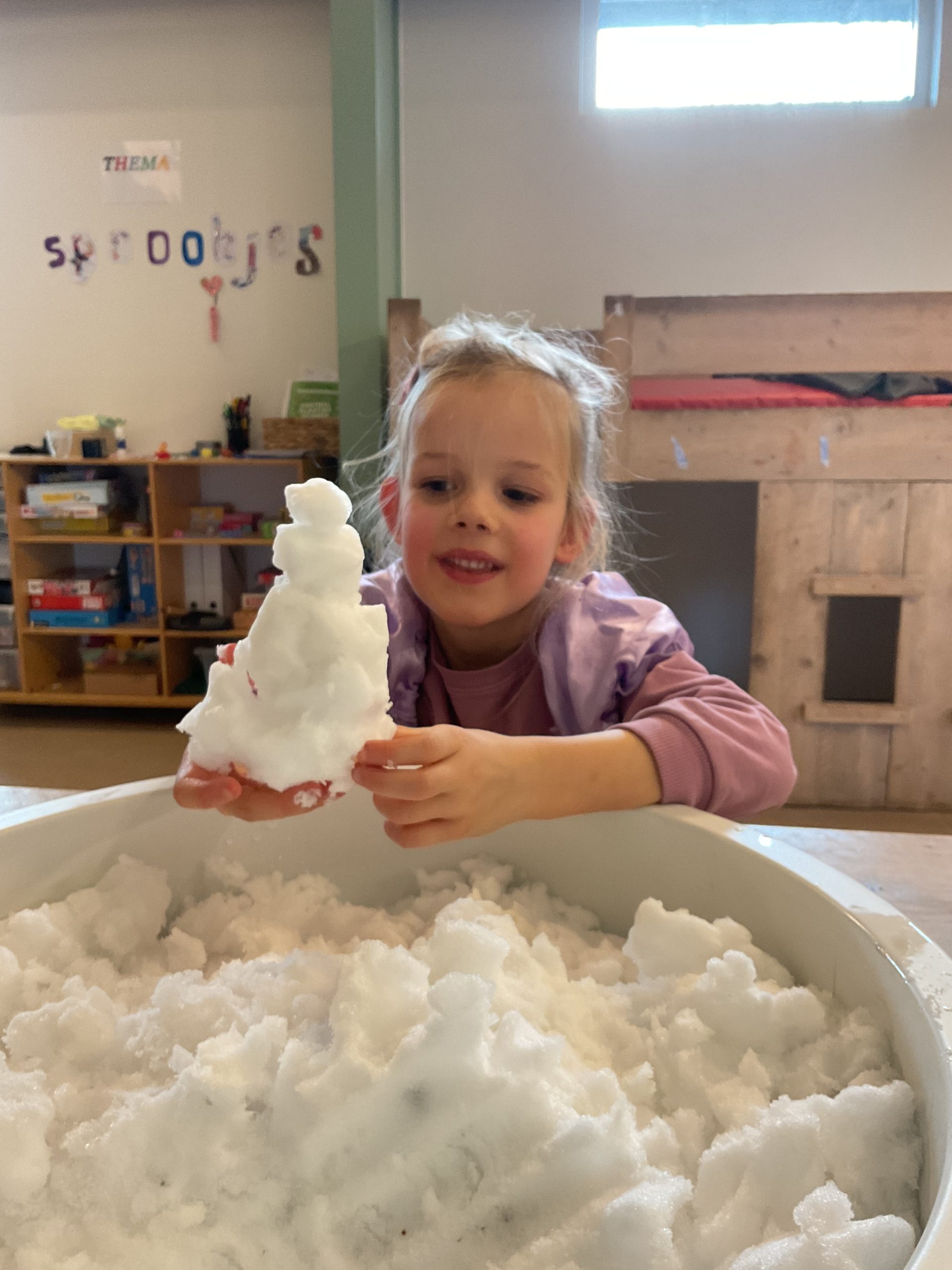 Vandaag was het buiten erg koud, maar spelen met sneeuw blijft leuk. Dus haalden we de sneeuw naar binnen en maakten samen kastelen, monsters en sneeuwpoppen. Samen ontdekken en verwonderen!