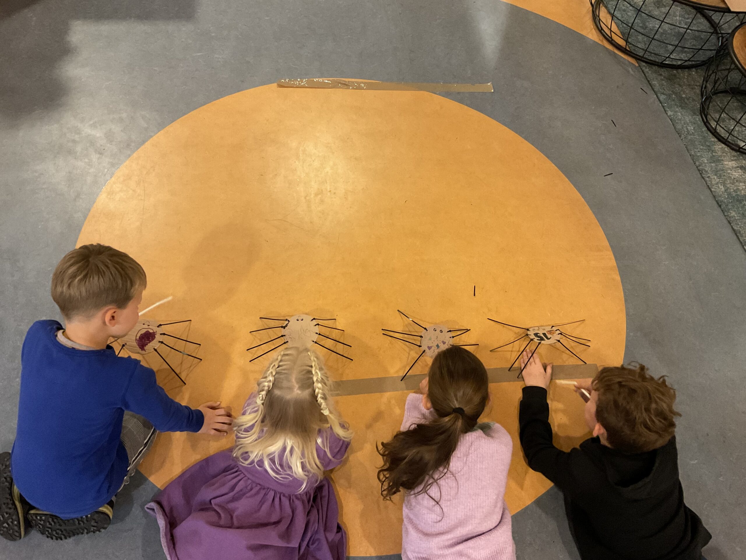Herfstvakantie, de kinderen hebben zelf spinnen gemaakt waarmee ze uiteindelijk een wedstrijdje konden racen tegen elkaar!