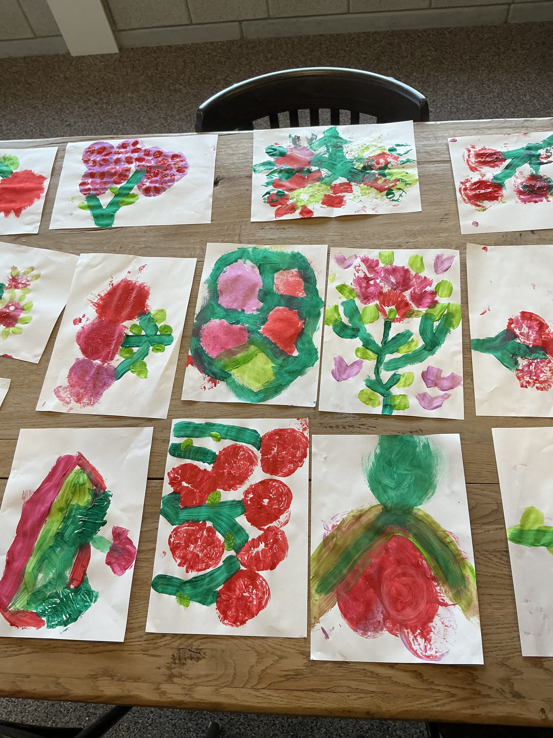 Het is bijna Valentijnsdag, een goede reden om lekker met verf aan de slag te gaan. Met een opgeblazen plastic zakje stempelen we rozen. Een struik of een boeket? De kinderen bedenken het zelf!