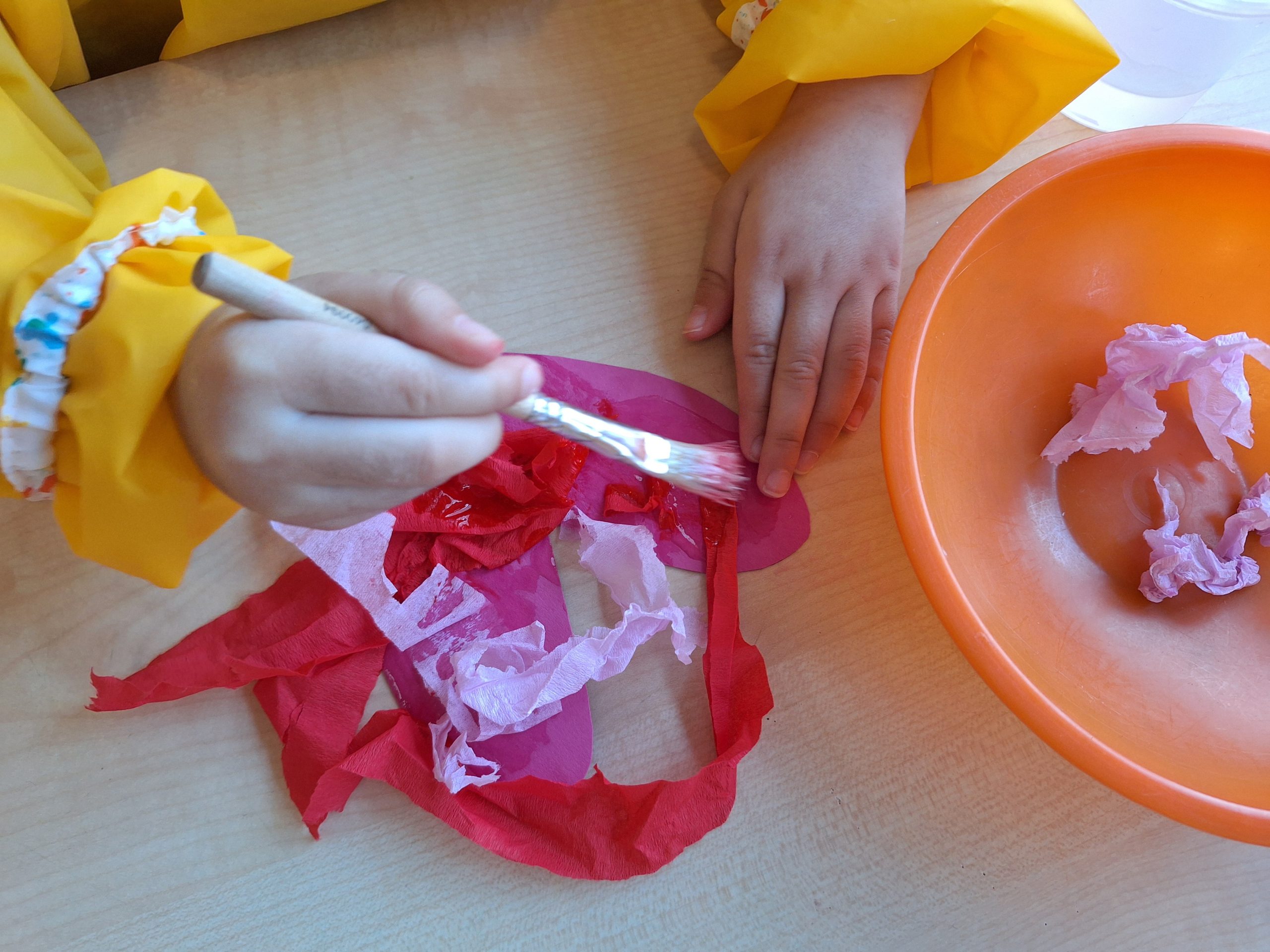 We knutselen een valentijnscadeautje om te geven aan iemand die je heel lief vindt. We scheuren propjes en plakken deze op papieren hartjes! ❤️