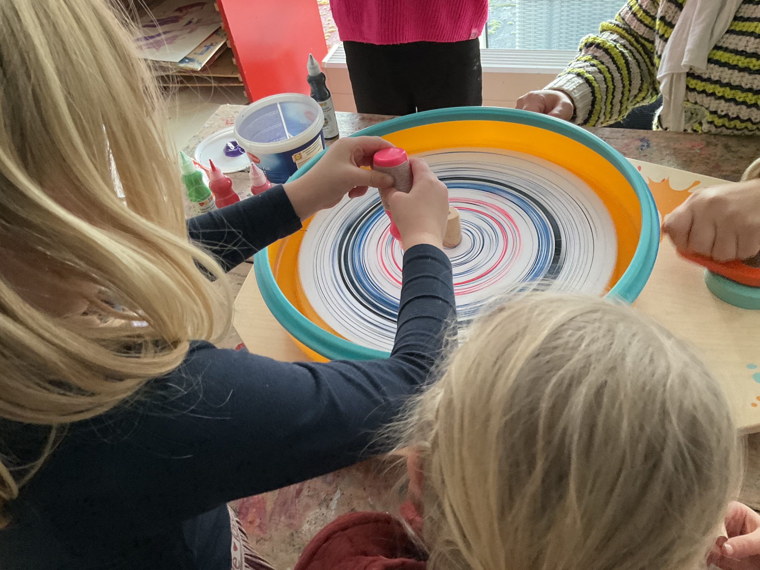 Studiemiddag van de IJsvogel. Wij maken kunstwerken met de verfspinner!
