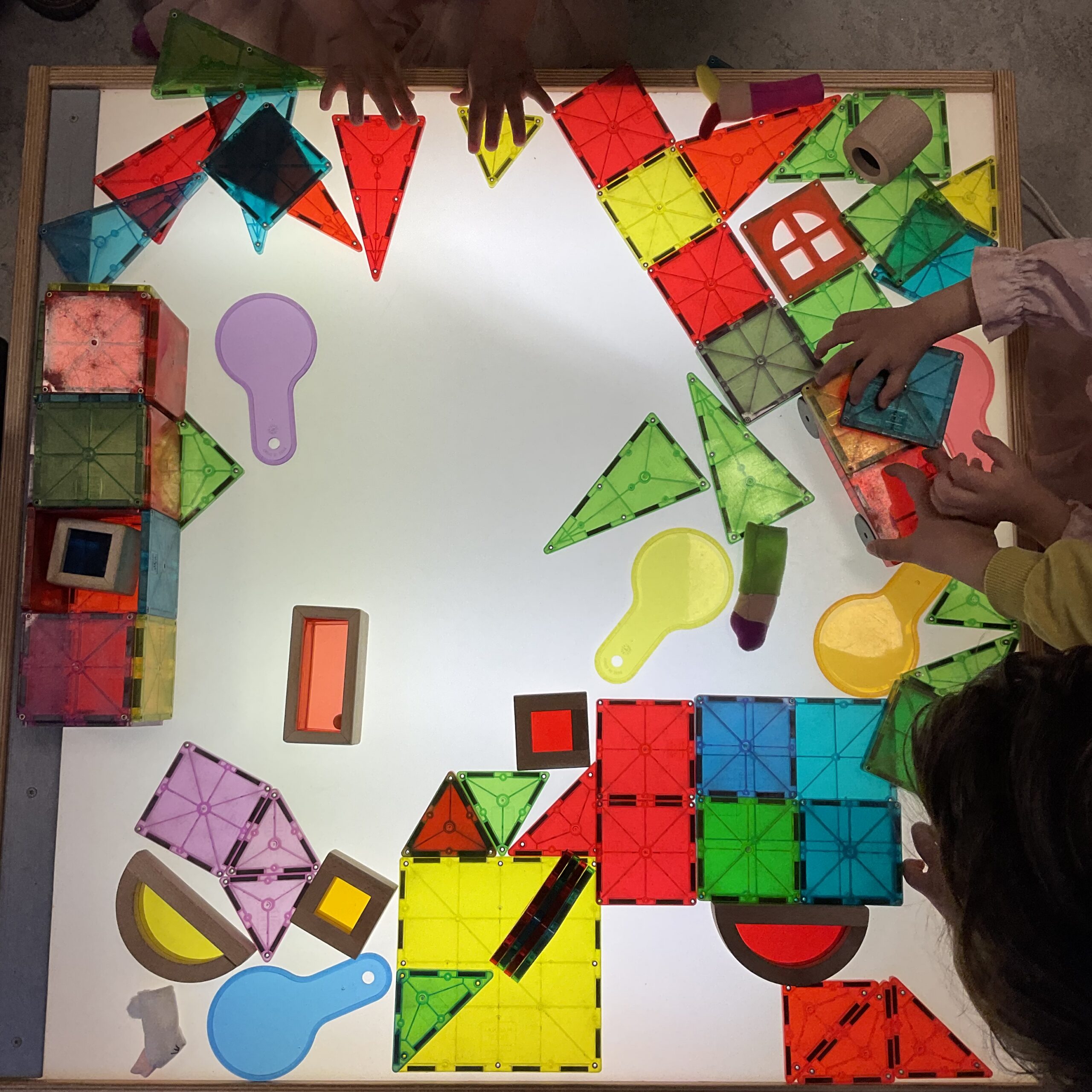 Buiten is het al donker, binnen hebben we licht. En wat een mooie kleuren schijnen er door de magnetische tegels!