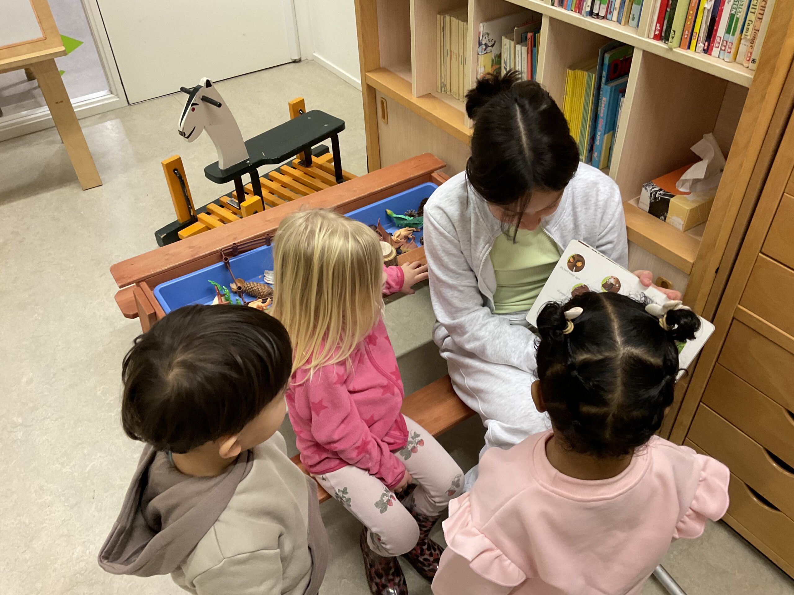 Vandaag kwam een oud-leerling van de basisschool gezellig langs. Ze had een studiedag van school en wilde graag een ochtend bij ons helpen. Dat vonden wij natuurlijk gezellig en de peuters ook!