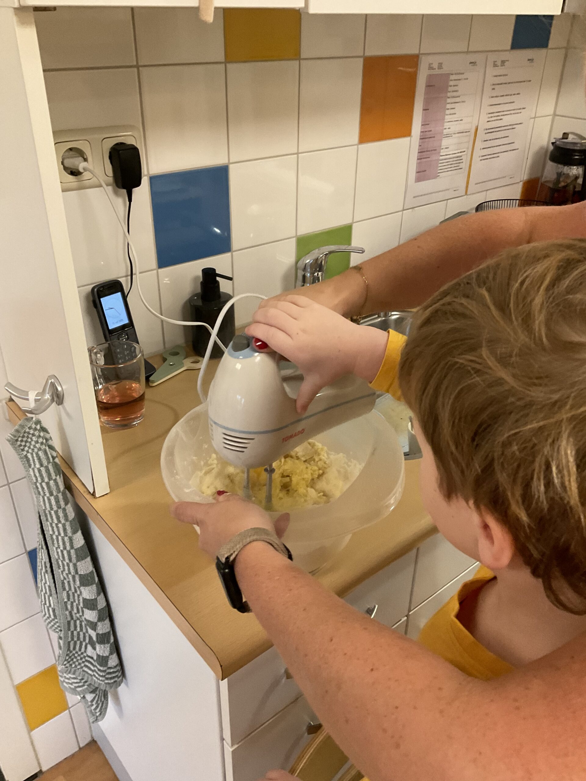 Op een herfstdag gezellig cakejes bakken met de kinderen. Boter in de kom, de cakemix erbij en mixen maar. Daarna de cakemix in de cakevormpjes en hup de oven in. Mmmm de cakejes waren lekker!