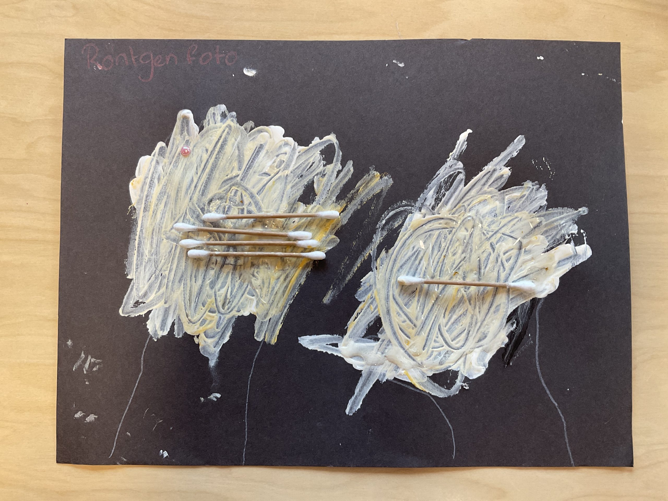 De kinderen maakten hun eigen röntgenfoto van hun hand(en). Zo lopen er al echte dokters rond op de peuteropvang!