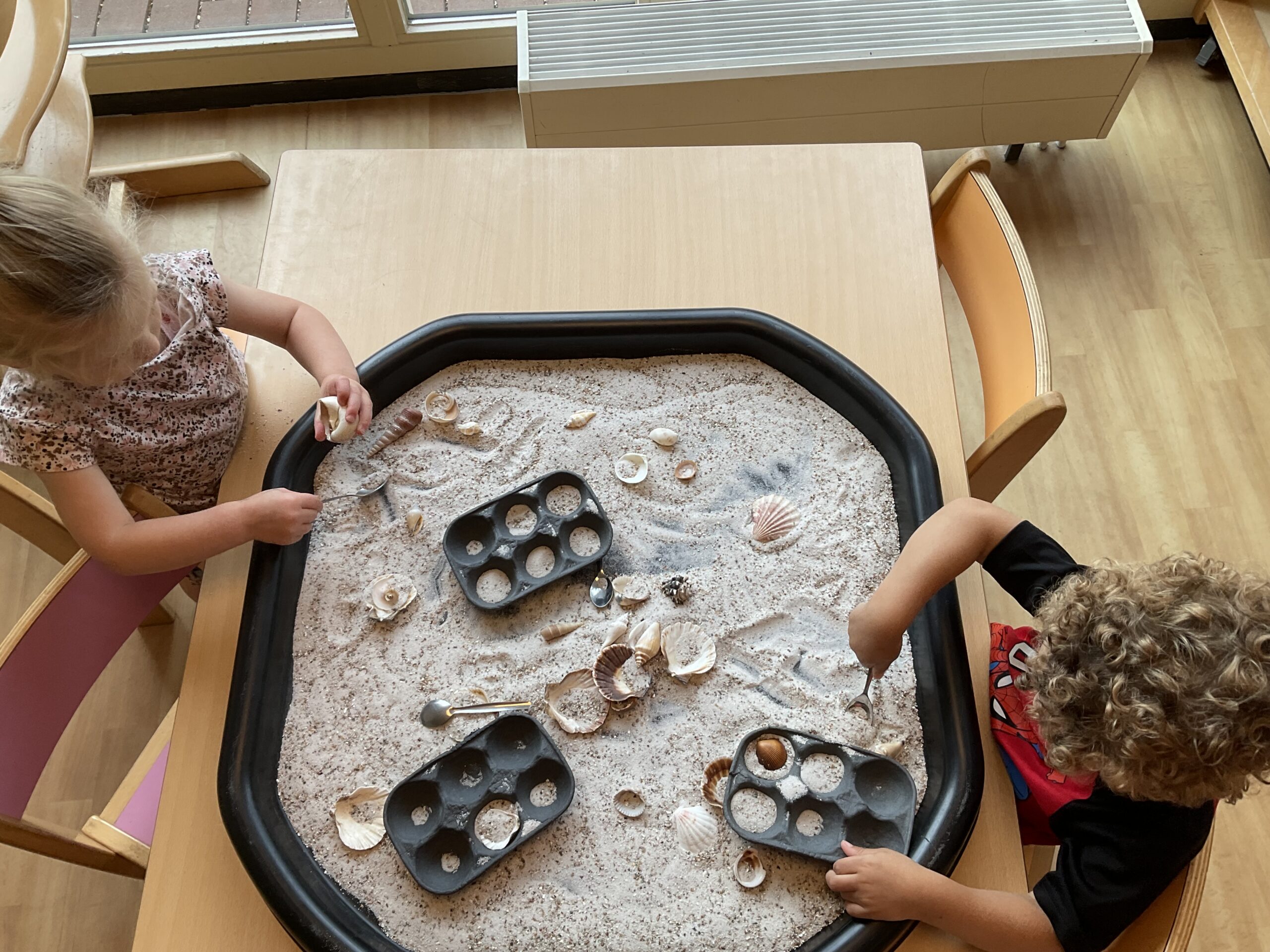 Met zand en schelpen lekker spelen en ontdekken.