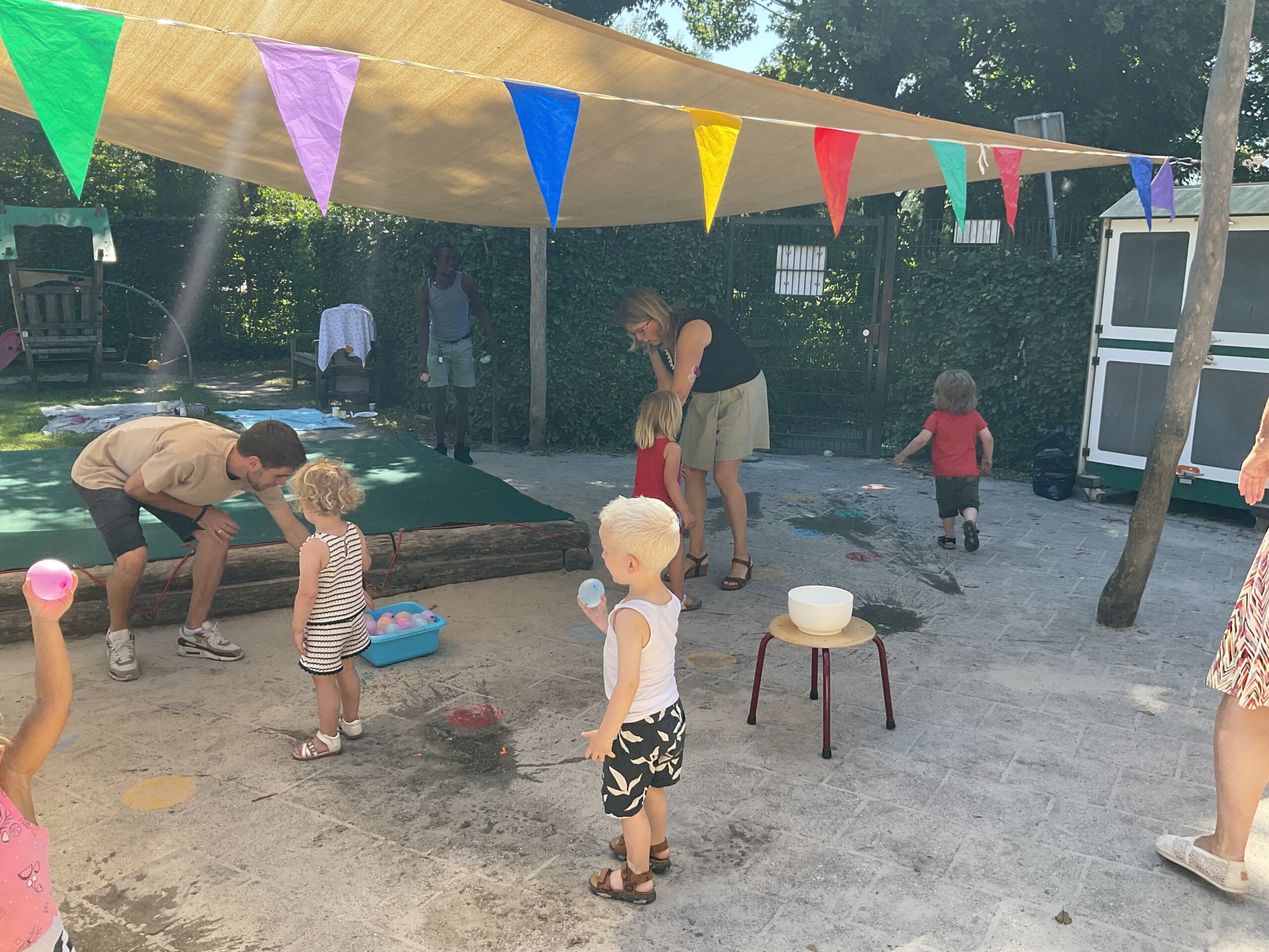 Bij een zomerfeest mag een waterspektakel niet ontbreken! Dus wat is er dan leuker dan de papa’s en mama’s nat gooien met waterballonnen?