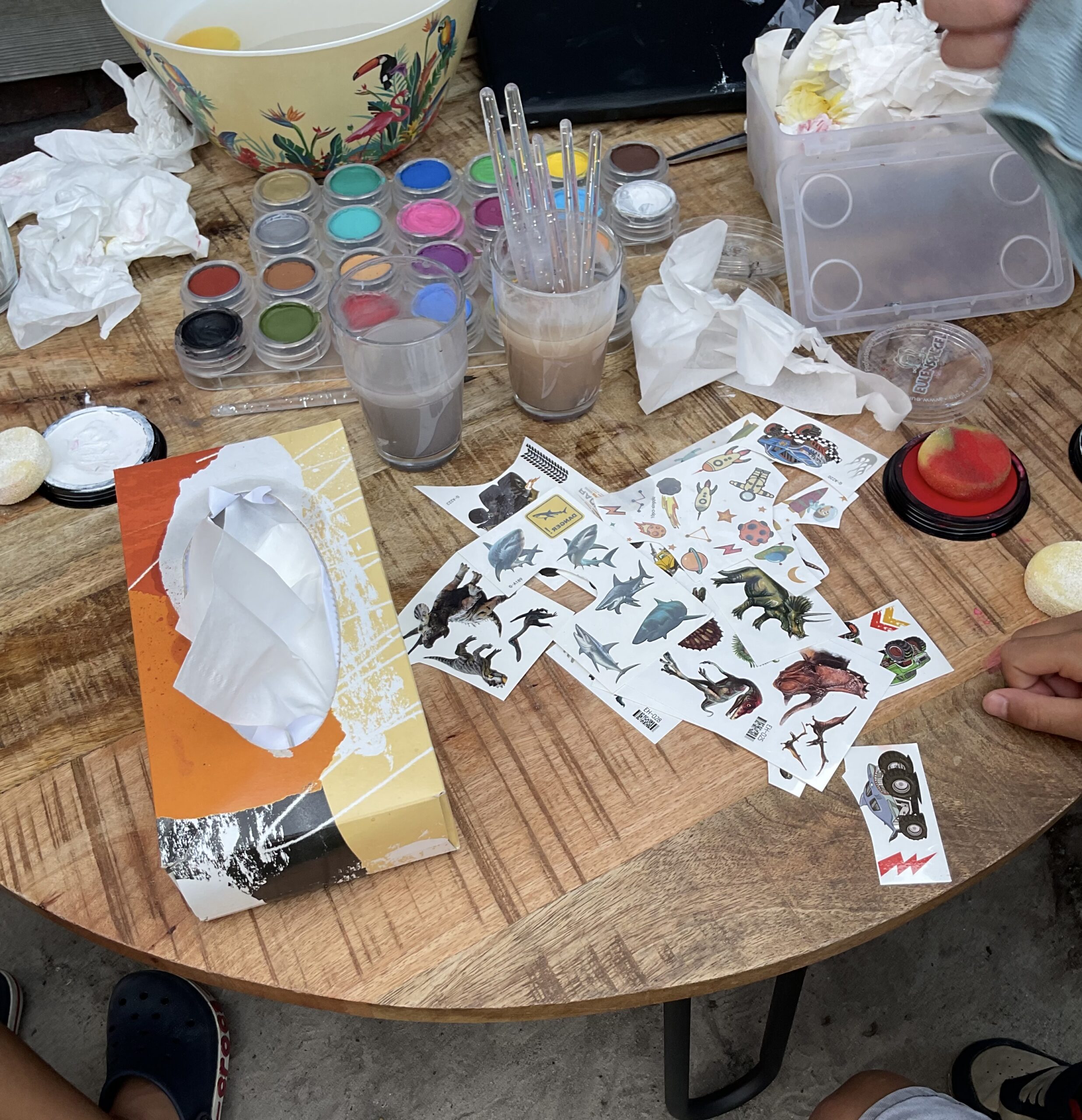 De kinderen konden geschminkt worden. En ze mochten een tattoo uitzoeken: een stoere haai, race auto, eenhoorn, ruimteschip of nog meer!