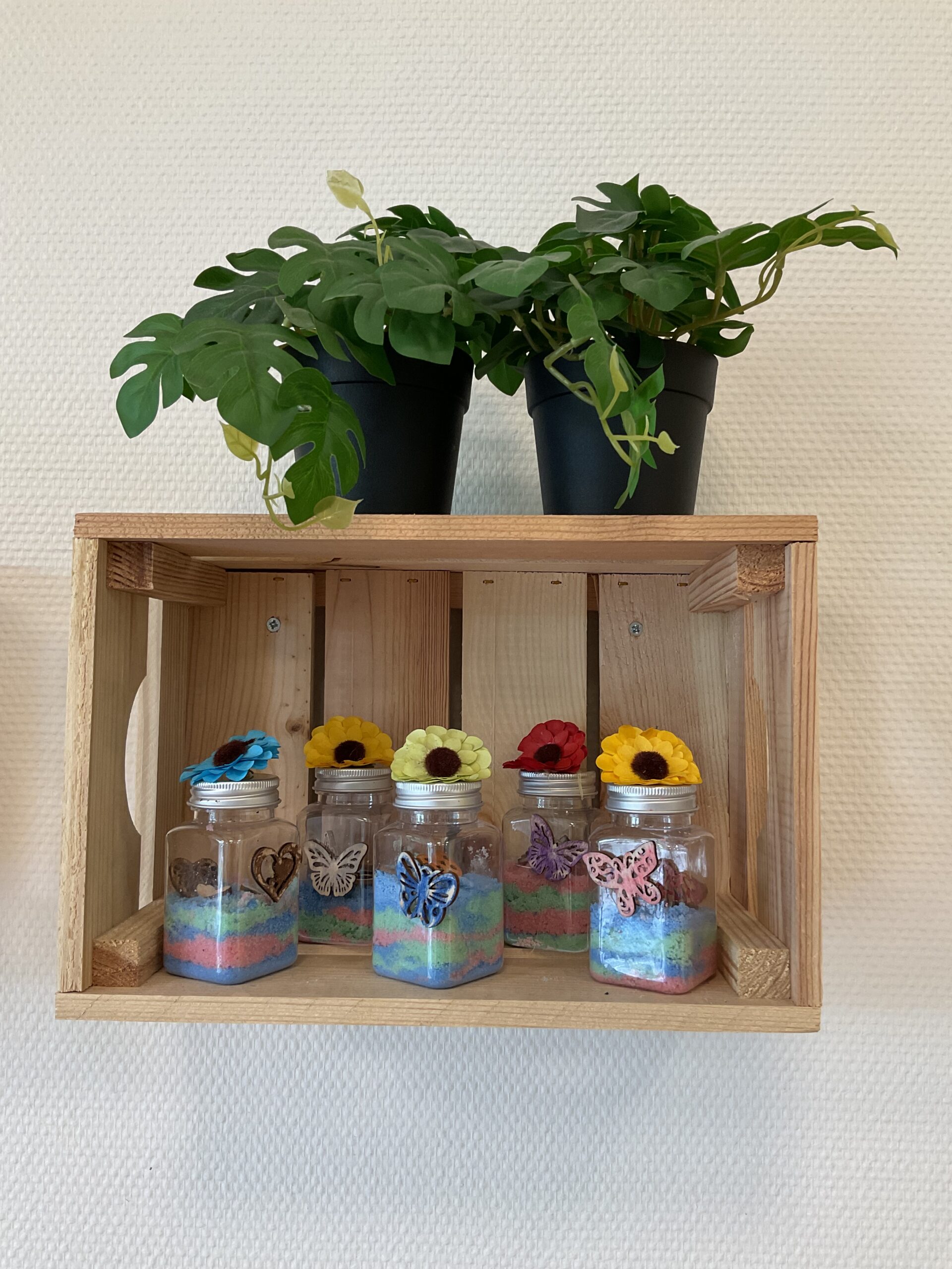 Leuke zomerse potjes gevuld met gekleurd zout.