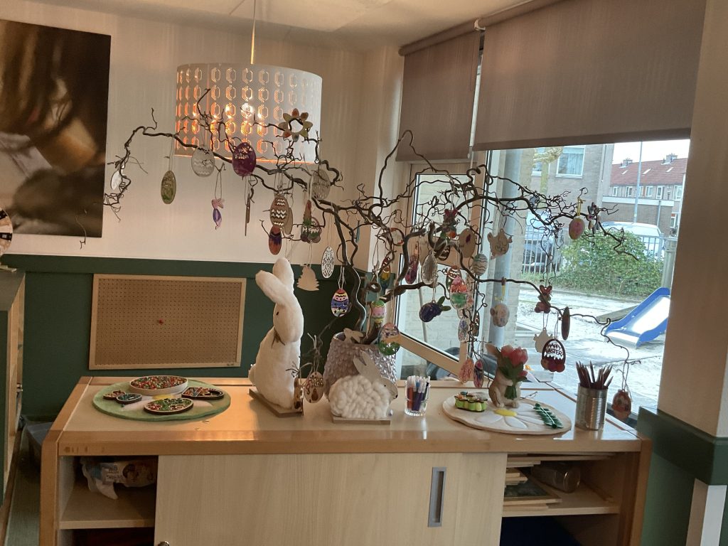 De kinderen komen graag op onze groep en voelen zich hier thuis. Samen zorgen we voor een vertrouwde basis voor de kinderen. In onze groep eten en drinken we samen en is altijd een plek om even rust te nemen. Bij ons is het spelen waar je wil. In de huishoek, de bouwhoek, de leeshoek, aan de tafel of in het atelier op de bovenverdieping. Creatief plezier dus!