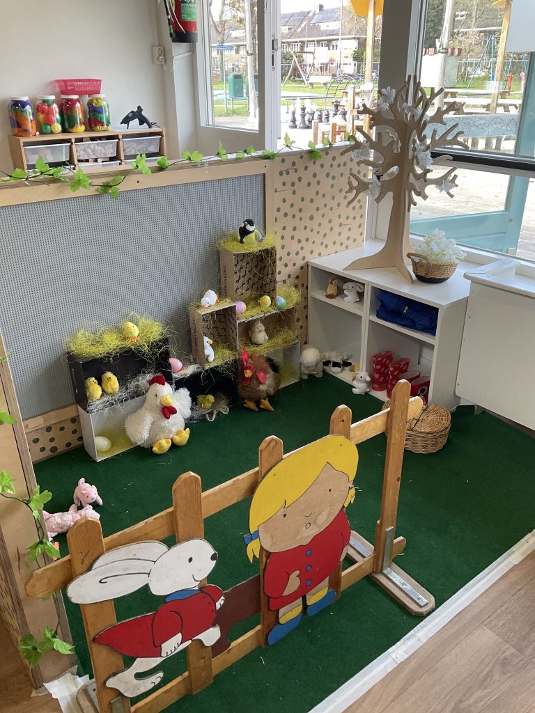 Wat zitten we op een fijne plek. Binnen hebben we ‘t goed voor elkaar in ons gezellige lokaal. Eigenlijk kan hier alles. Krijten op het grote schoolbord, knutselen en spelen met poppen en auto’s, lekker in een hoekje. Natuurlijk zitten we samen ook vaak aan de grote tafel of in de kring. Om fruit te eten, om te kletsen en te zingen of voor een creatieve ochtend. We zijn een VE peuteropvang en werken daarbij met de Piramide methode. Dat stimuleert de ontwikkeling al zo jong als ze zijn.