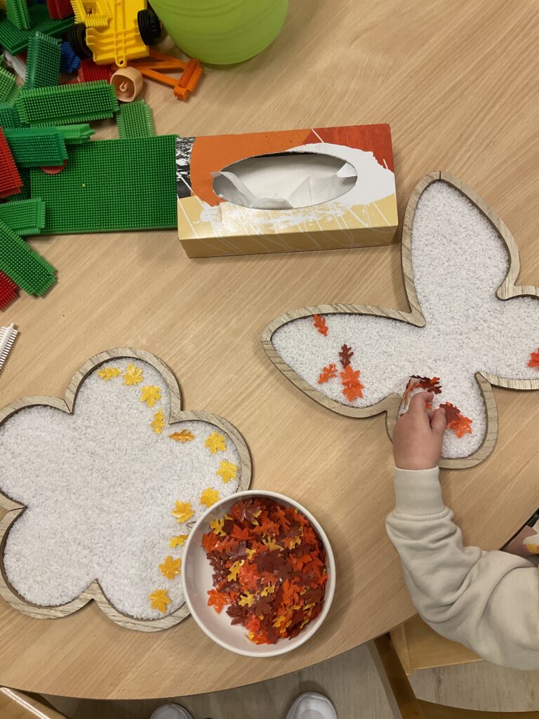Spelen met kleine blaadjes.